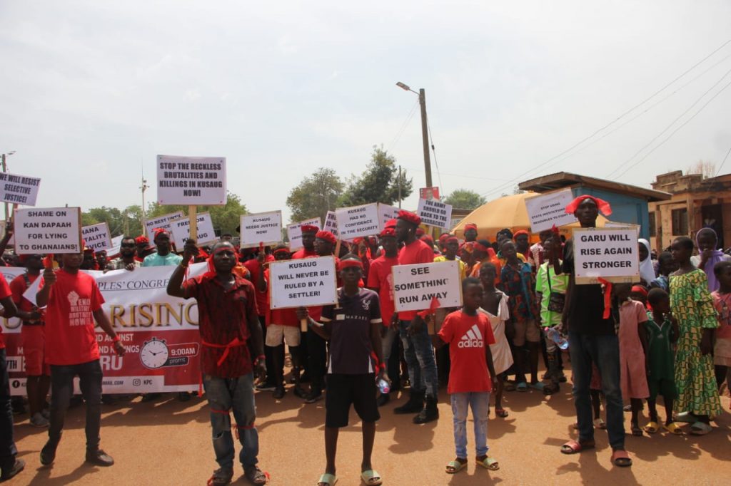 Addressing demonstrators in Garu, the president of the Kusaug People Congress, Prof. John Azumah called on the government to institute an independent inquiry committee to investigate the abuse meted out to the innocent cicitizens of Garu and Bugri.
